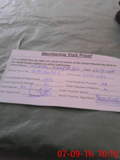 | Attendance Register | Head Teacher | MEA with School | Visit Proof |