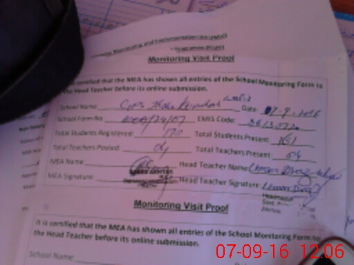 | Attendance Register | Head Teacher | MEA with School | Visit Proof |