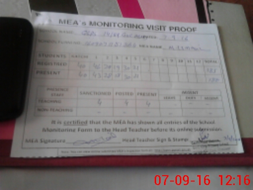 | Attendance Register | Head Teacher | MEA with School | Visit Proof |