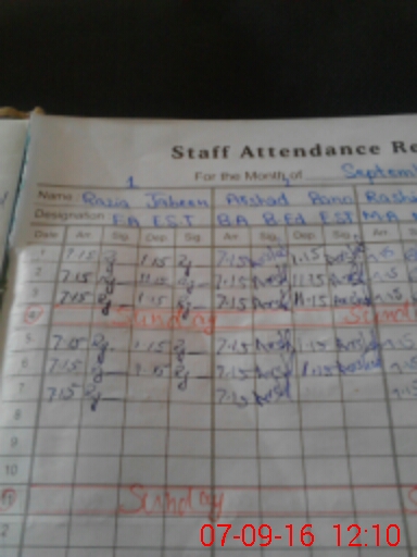 | CNIC | Full Name | Designation | R/C | Absence During Last Calender Month |