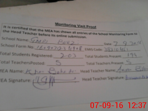 | Attendance Register | Head Teacher | MEA with School | Visit Proof |
