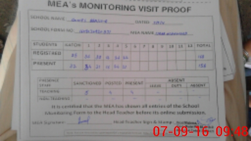 | Attendance Register | Head Teacher | MEA with School | Visit Proof |