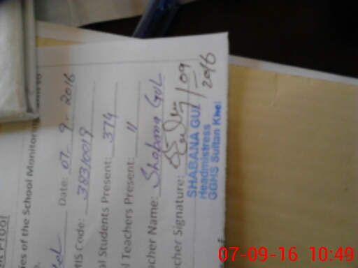 | EMIS Code: 38310019 | Name of School: GGHS SULTAN KHEL | |||