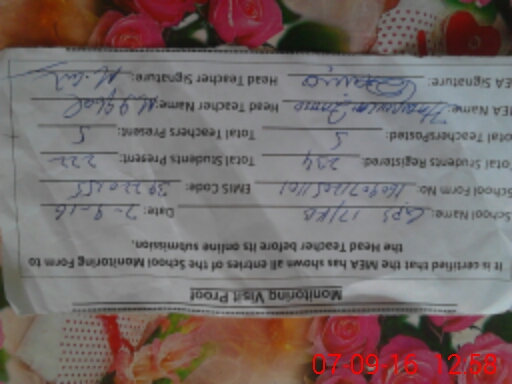 | Certified that this School was Inspected by the Undersigned MEA/DMO Today and the Information Stated Above is as Per Record. | |||||
