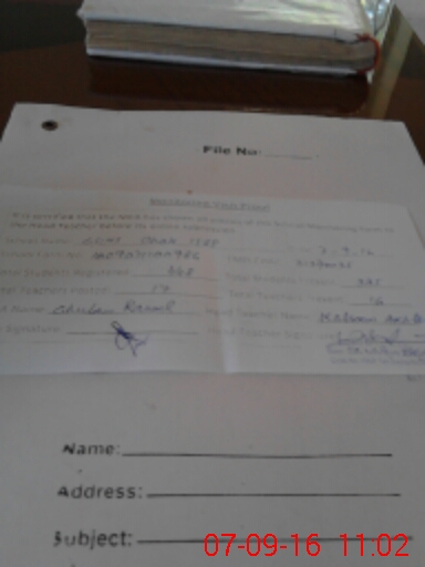 | Name: As**** Am**** Designation: (School Headmaster's/Headmistress's) Incharge HEADMistress Phone/Cell Number: 03**** |