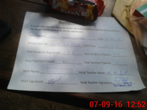 | Attendance Register | Head Teacher | MEA with School | Visit Proof |