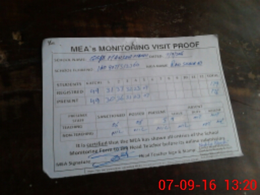 | Attendance Register | Head Teacher | MEA with School | Visit Proof |
