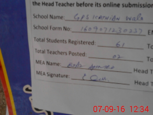 | Name: RA**** MU**** WA**** Designation: (School Headmaster's/Headmistress's) PST/PTC/JV Phone/Cell Number: 03**** |