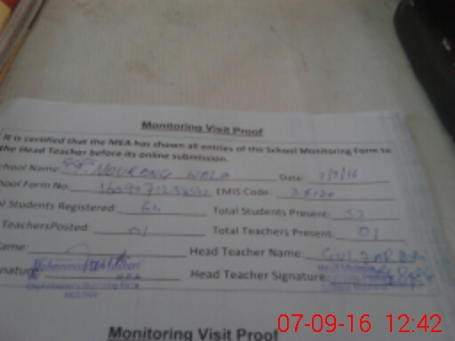 | Attendance Register | Head Teacher | MEA with School | Visit Proof |