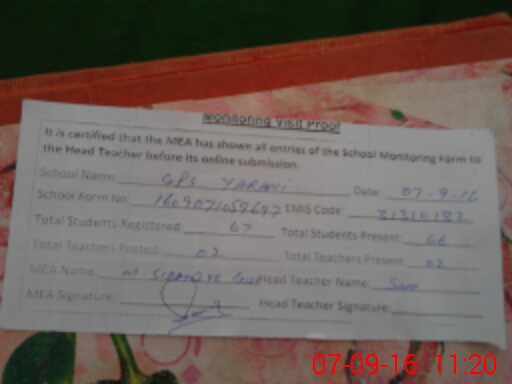 | EMIS Code: 31310182 | Name of School: GES YARANI BASTI YARANI (After Noon) | |||