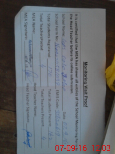 | Attendance Register | Head Teacher | MEA with School | Visit Proof |