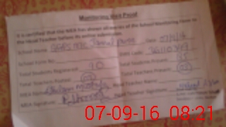| Certified that this School was Inspected by the Undersigned MEA/DMO Today and the Information Stated Above is as Per Record. | |||||