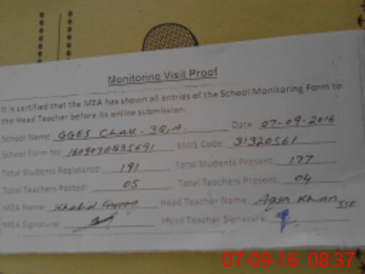 | Attendance Register | Head Teacher | MEA with School | Visit Proof |