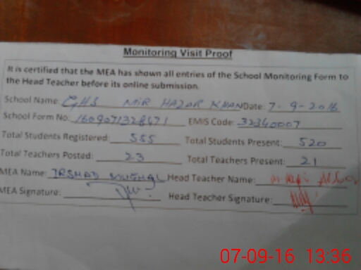 | EMIS Code: 32340007 | Name of School: GHS MIR HAZAR KHAN | |||