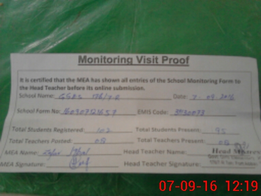 | Attendance Register | Head Teacher | MEA with School | Visit Proof |