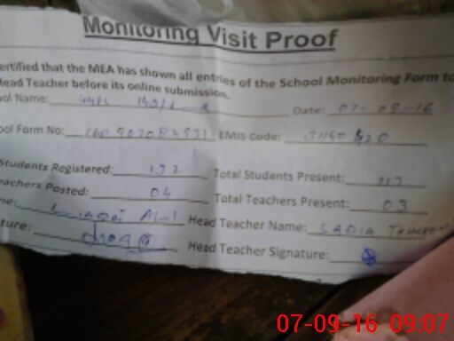 | Attendance Register | Head Teacher | MEA with School | Visit Proof |