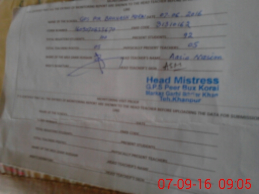 | EMIS Code: 31310162 | Name of School: GPS PEER BUX KORAI (After Noon) | |||
