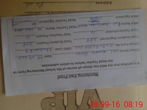 | Certified that this School was Inspected by the Undersigned MEA/DMO Today and the Information Stated Above is as Per Record. | |||||