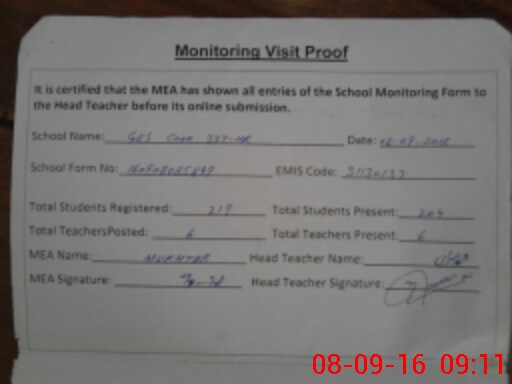 | Attendance Register | Head Teacher | MEA with School | Visit Proof |