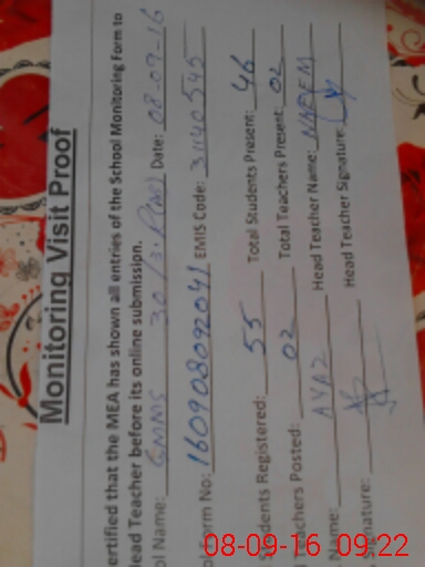 | Certified that this School was Inspected by the Undersigned MEA/DMO Today and the Information Stated Above is as Per Record. | |||||