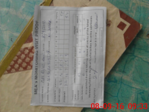 | Monitoring Date: 08-09-2016 | Start Time: 08-09-2016 08:46 AM | End Time: 08-09-2016 09:34 AM | Name of MEA: Mu**** Za**** (S**** | |