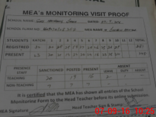 | Certified that this School was Inspected by the Undersigned MEA/DMO Today and the Information Stated Above is as Per Record. | |||||