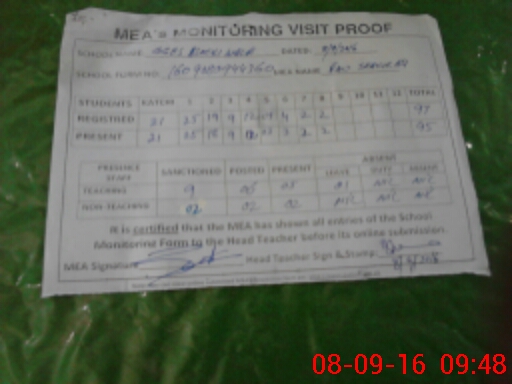 | Attendance Register | Head Teacher | MEA with School | Visit Proof |