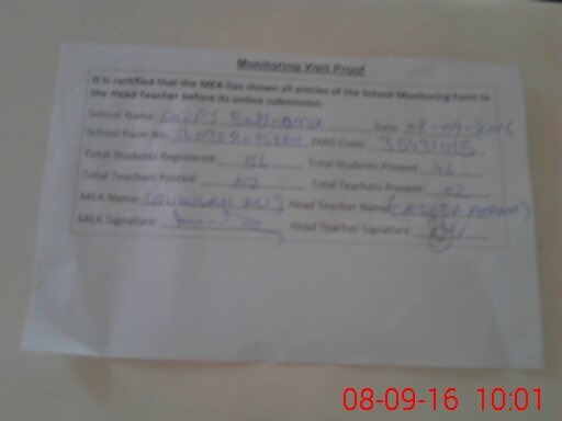 | Name: NO**** MU**** Designation: (School Headmaster's/Headmistress's) PST Phone/Cell Number: 03**** |