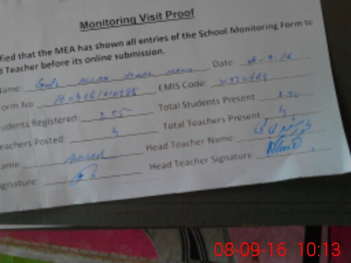 | Certified that this School was Inspected by the Undersigned MEA/DMO Today and the Information Stated Above is as Per Record. | |||||
