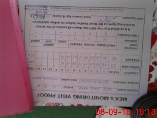| Attendance Register | Head Teacher | MEA with School | Visit Proof |