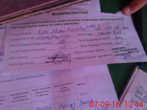 | Attendance Register | Head Teacher | MEA with School | Visit Proof |