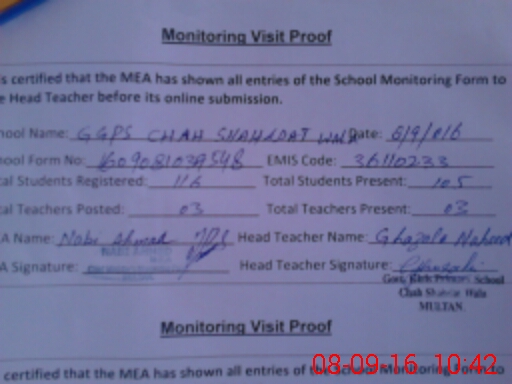 | EMIS Code: 36110233 | Name of School: GGPS CHAH SHAHADAT WALA MULTAN | |||