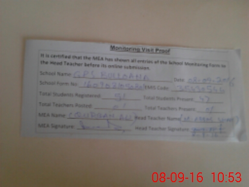 | EMIS Code: 35430544 | Name of School: GPS BULLOANA JHABRAN | |||
