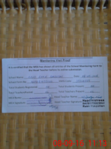| Certified that this School was Inspected by the Undersigned MEA/DMO Today and the Information Stated Above is as Per Record. | |||||