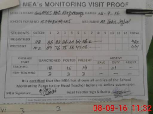 | Attendance Register | Head Teacher | MEA with School | Visit Proof |