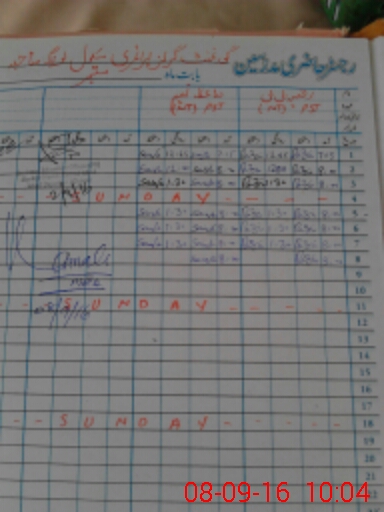 | CNIC | Full Name | Designation | R/C | Absence During Last Calender Month |