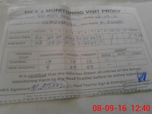 | Attendance Register | Head Teacher | MEA with School | Visit Proof |