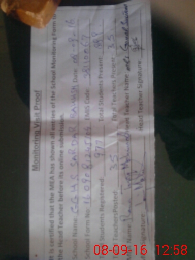 | Attendance Register | Head Teacher | MEA with School | Visit Proof |