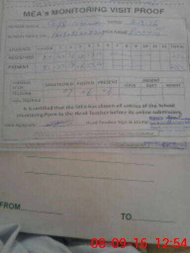 | Attendance Register | Head Teacher | MEA with School | Visit Proof |