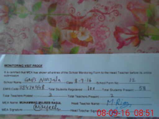 | Certified that this School was Inspected by the Undersigned MEA/DMO Today and the Information Stated Above is as Per Record. | |||||
