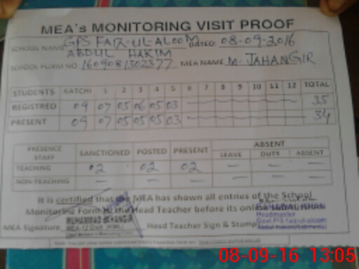 | EMIS Code: 36410259 | Name of School: GPS FAIZ UL ALOOM, ABDUL HAKIM | |||