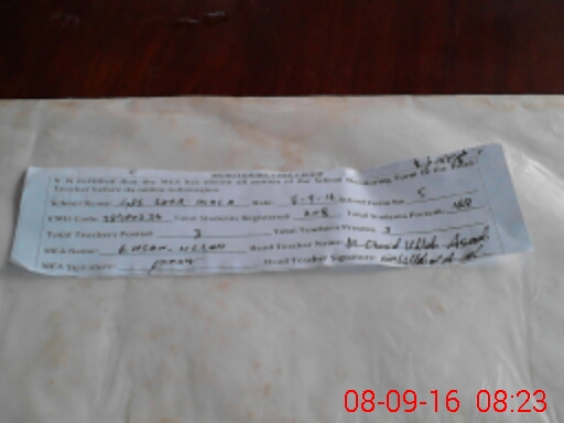 | Name: Sh**** As**** Designation: (School Headmaster's/Headmistress's) PST Phone/Cell Number: 03**** |