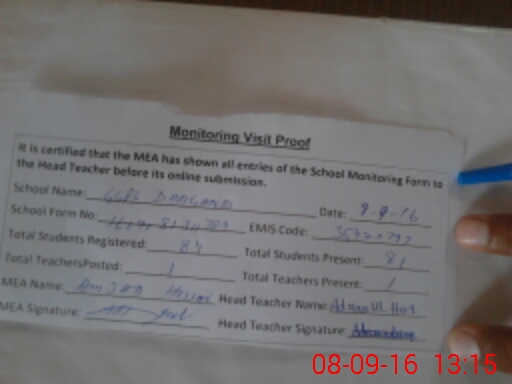 | Certified that this School was Inspected by the Undersigned MEA/DMO Today and the Information Stated Above is as Per Record. | |||||