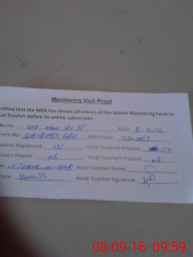 | Attendance Register | Head Teacher | MEA with School | Visit Proof |