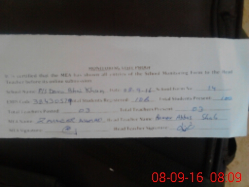 | Certified that this School was Inspected by the Undersigned MEA/DMO Today and the Information Stated Above is as Per Record. | |||||