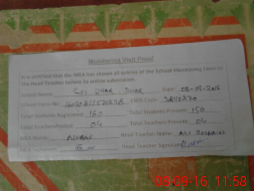 | EMIS Code: 38110270 | Name of School: GPS JHAR BHAR | |||