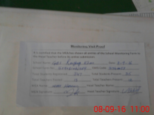 | EMIS Code: 31340058 | Name of School: GHS RANJHAY KHAN | |||