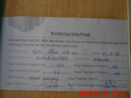 | EMIS Code: 31340284 | Name of School: GPS ALLO KHAN | |||