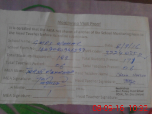 | Certified that this School was Inspected by the Undersigned MEA/DMO Today and the Information Stated Above is as Per Record. | |||||