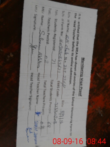 | Certified that this School was Inspected by the Undersigned MEA/DMO Today and the Information Stated Above is as Per Record. | |||||